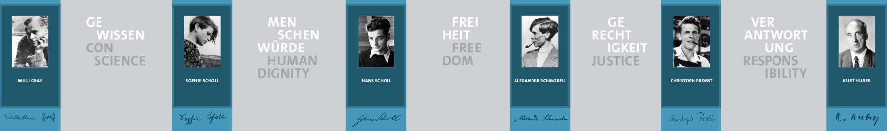 Die Text- und Bildtafeln dieser Ausstellung beschreiben die Entstehungsgeschichte der Weißen Rose, ihre Widerstandsaktionen, die Verbindungen zu anderen Oppositionellen sowie ihre Verfolgung und Verurteilung durch die NS-Justiz. Im Mittelpunkt stehen die Lebensgeschichten von Willi Graf, Prof. Kurt Huber, Hans Leipelt, Christoph Probst, Alexander Schmorell, Hans Scholl und Sophie Scholl.